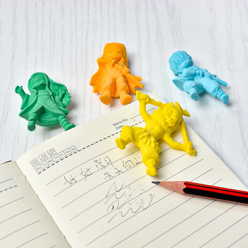 High-quality, non-toxic eraser material shaped as mini action figure dolls with vibrant anime details.