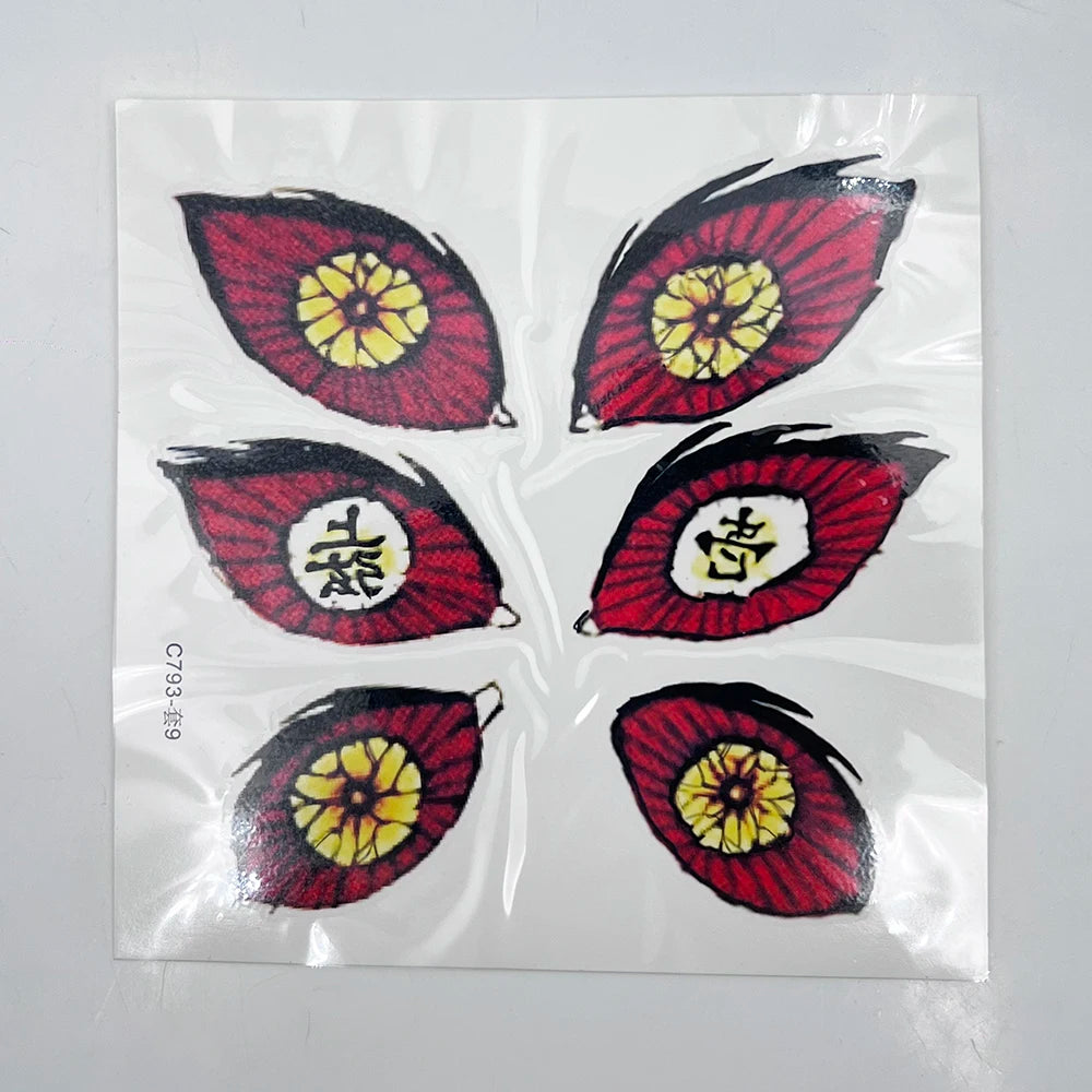 Transform into the fearsome Kokushibo with this high-quality waterproof fake tattoo sticker! Perfect for cosplay, parties, or fans of Kimetsu no Yaiba who want to show off the iconic Twelve Kizuki terror eye design.