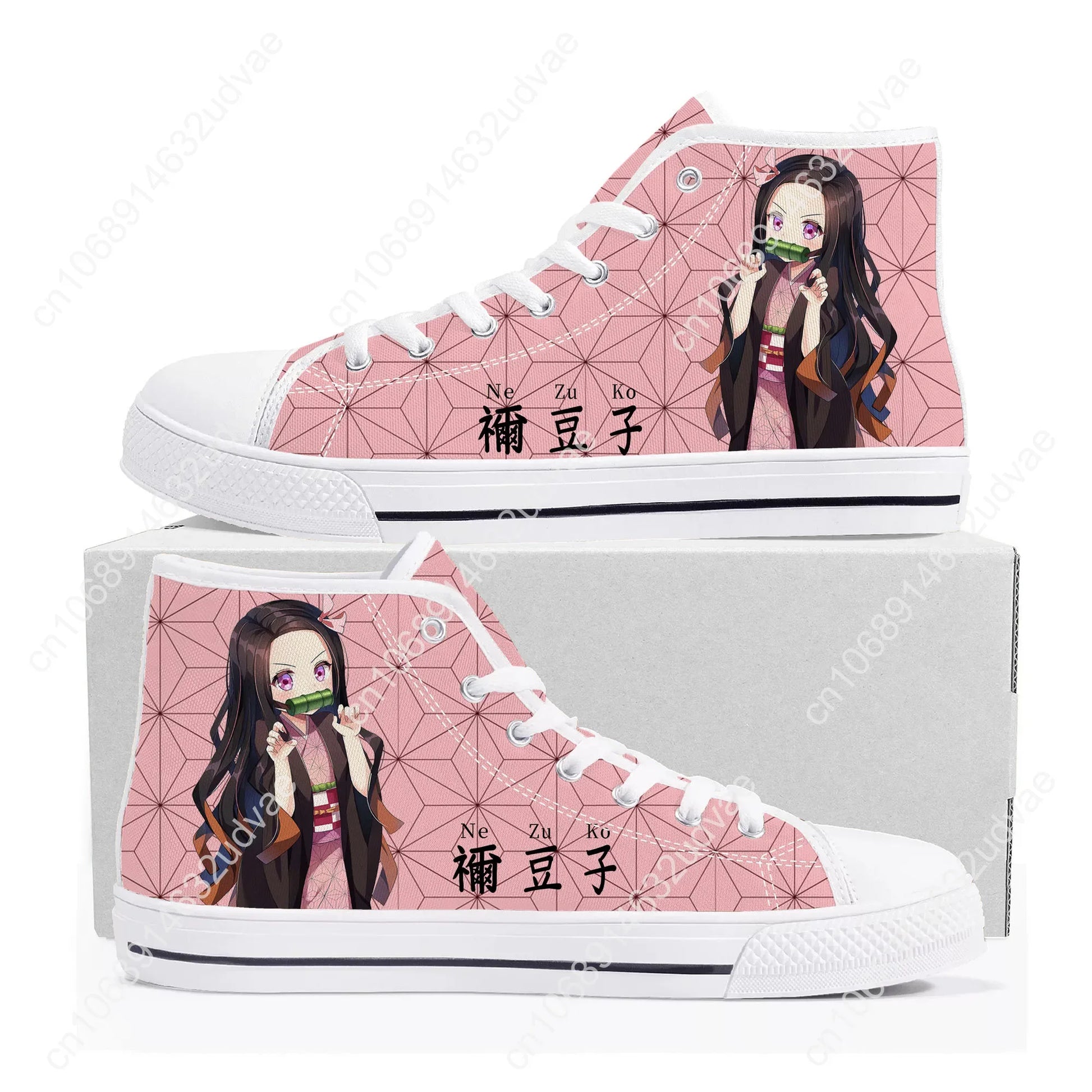 Anime Demon Slayer Kimetsu No Yaiba High Top Sneakers – Tanjiro & Nezuko Canvas Shoes for Men, Women & Teens