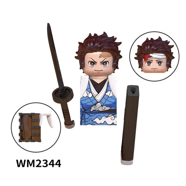 Japan Anime Demon Slayer Mini Action Figures Blocks – Akaza, Rui, Iguro Obanai, Tanjirou, Nezuko & Zenitsu