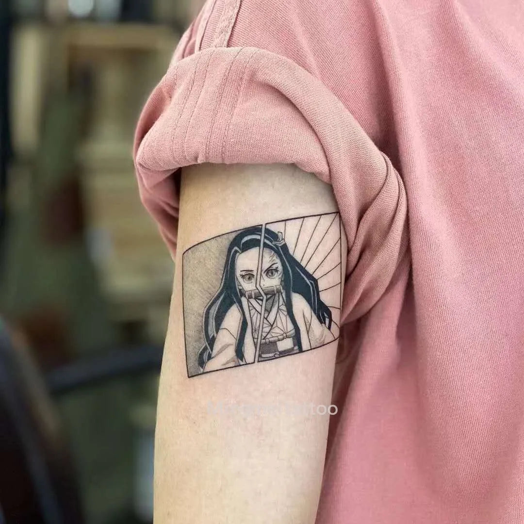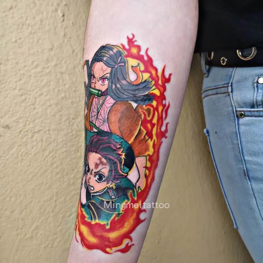 Anime Temporary Tattoos – Cartoon Nezuko & Tanjirou Waterproof Body Art Stickers