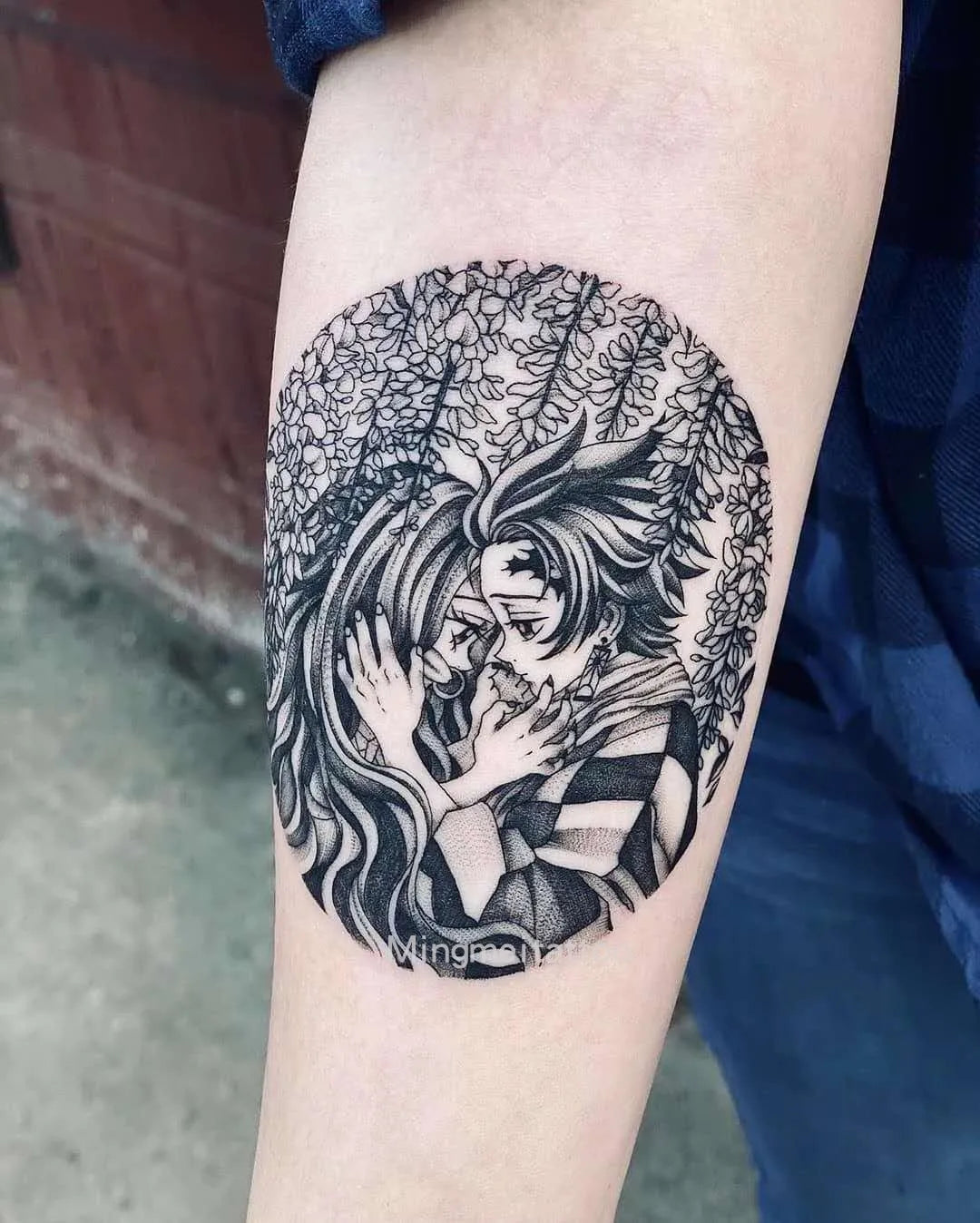 Cute and detailed cartoon tattoos of Nezuko and Tanjirou