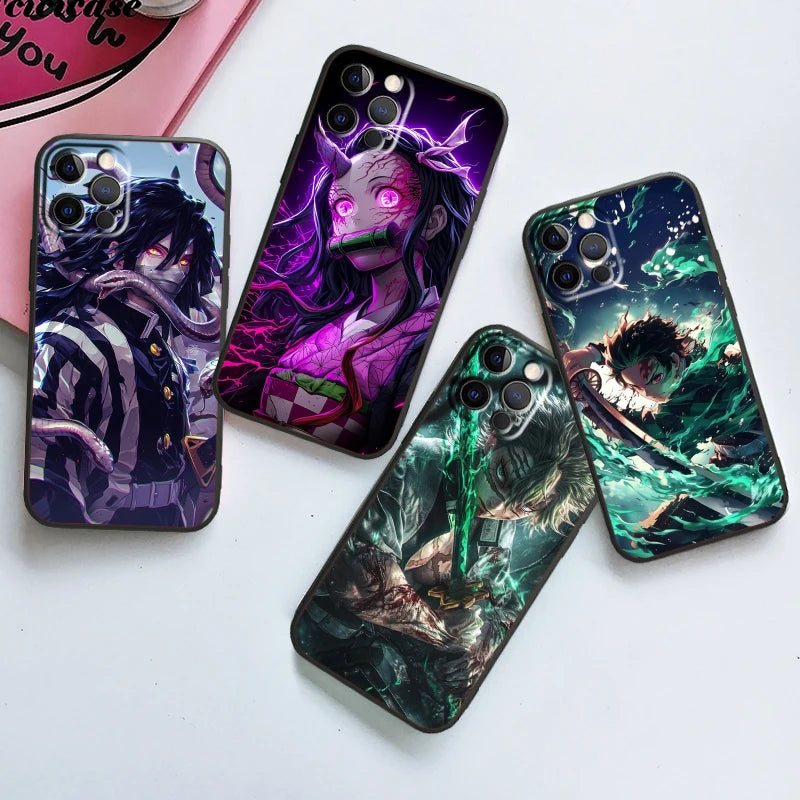 Demon Slayer Cool Anime Phone Case – For iPhone 15, 14, 13, 12, 11, XS, XR, X, 8, 7, SE, Pro Max, Plus, Mini | Black Cover